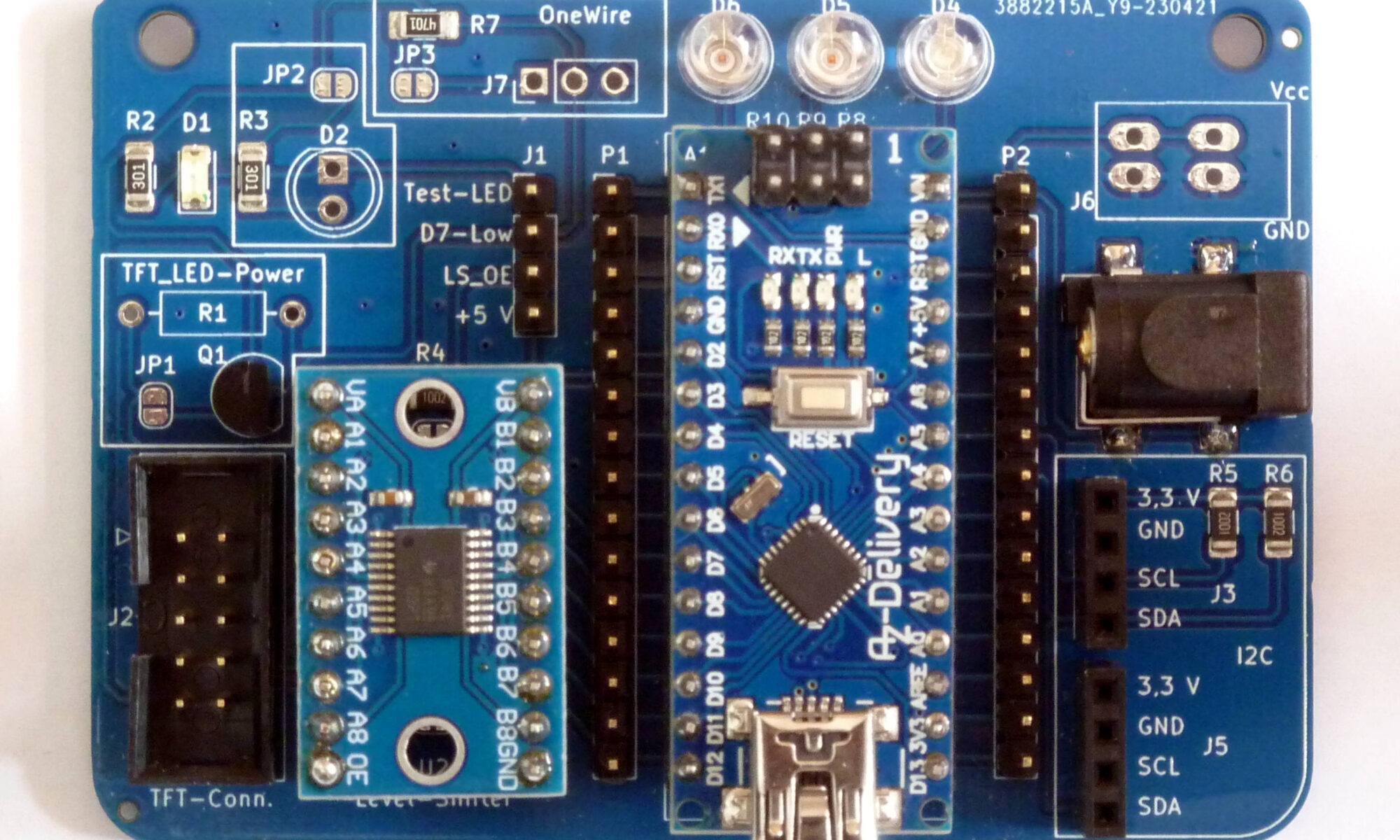 Arduino-Nano Dev-Board v2.0 – mit Komponenten (Level-Shifter und Nano)